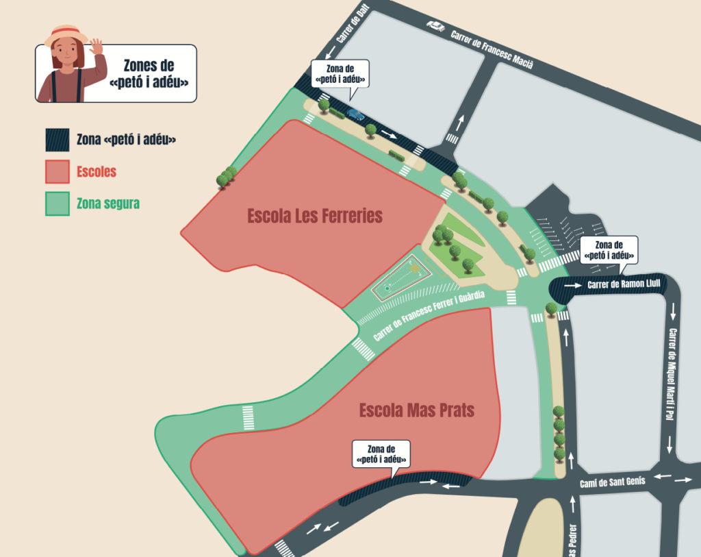 Hi haurà una novetat important: l’estrena de les zones de «petó i adéu» (o «P+A»). Aquestes zones, properes a les escoles, serviran perquè les famílies s’aturin un moment, s’acomiadin de l’infant i marxin tot seguit.