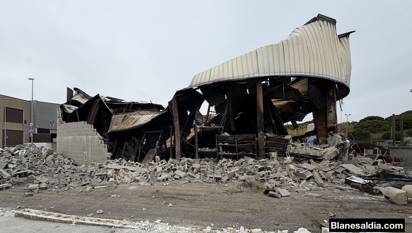 Un altre dels costos destacats és l’enderroc de les naus calcinades, pressupostat en 150.000 euros, als quals se sumen 11.600 euros més pel projecte tècnic i la coordinació de seguretat dels treballs. A tot plegat s’hi afegeix la despesa de vigilància nocturna, que ja ascendeix a 3.750 euros, per evitar l’accés a l’interior dels magatzems, on encara hi ha risc d’esfondrament.