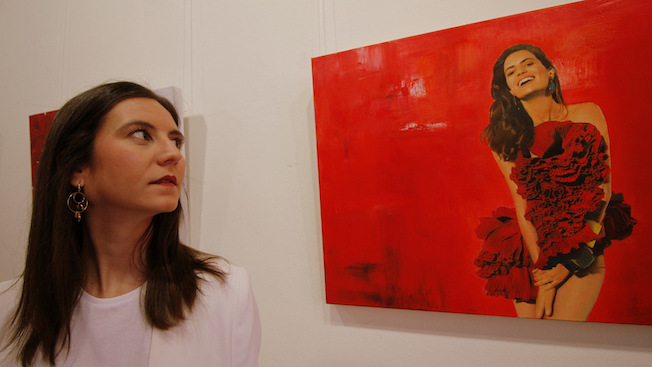 Les seves obres estan influenciades per la publicitat. La seva part de l’exposició l’ha titulat Intensitat, i compta amb dues vessants. A la primera hi ha fotografies passades a tela i redibuixades amb acrílic o a l’oli amb la tècnica del Transfer. Inclouen dos tipus de temàtiques: dones d’avui dia, segures i independents; i paisatges de la Índia. La segona part inclou diversos esbossos fets amb carbonets majoritàriament figuratius, alguns ràpids i a cop d’ull, i d’altres més assossegats, amb la intensitat com a denominador comú.