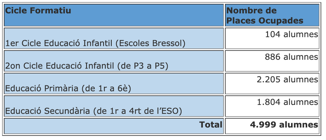 Es tracta d’una xifra similar en relació a l’anterior curs escolar 2020-2021, i és el resultat de la suma de 3.195 alumnes en l’educació primària i 1.804 en educació secundària.