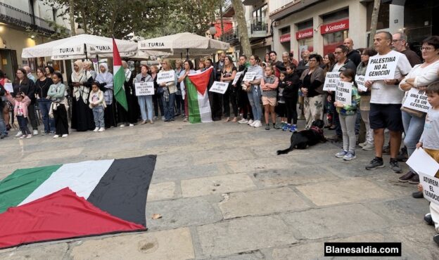 La manifetación de Blanes se enmarca en las movilizaciones que se realizaron ayer en numerosas poblaciones de España, para protestar por la detención de los miembros de la flotilla humanitaria y el genocidio en Gaza y Cisjordania perpetrado por Israel.