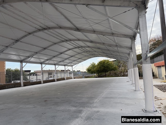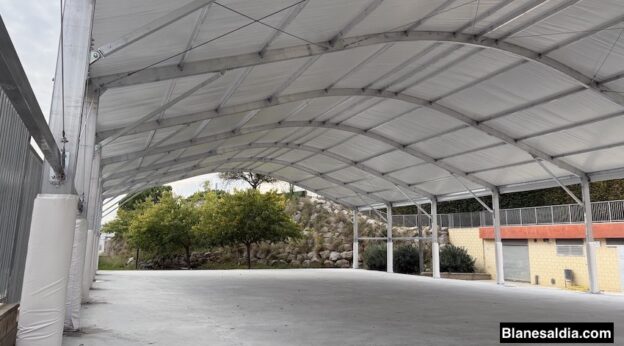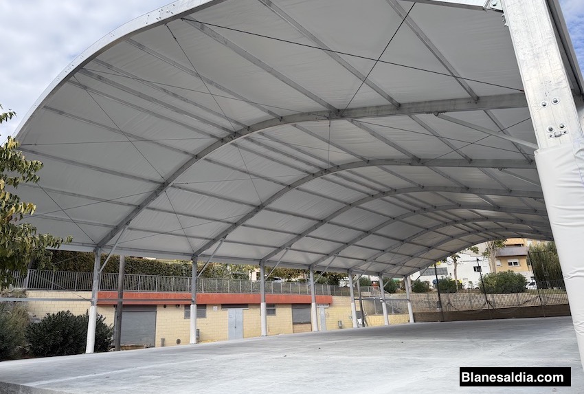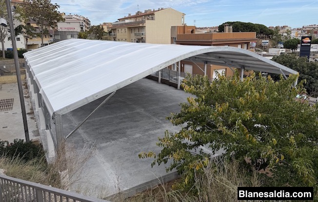 La pista deportiva del barrio Mas Florit de Blanes ya tiene la cubierta metálica, después de que el pasado mes de septiembre se pavimentase el recinto. El equipamiento encara la recta final y previsiblemente se abrirá al público antes de que finalice el año.