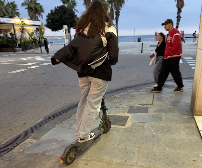 Una joven circula en patinete por el centro de Blanes