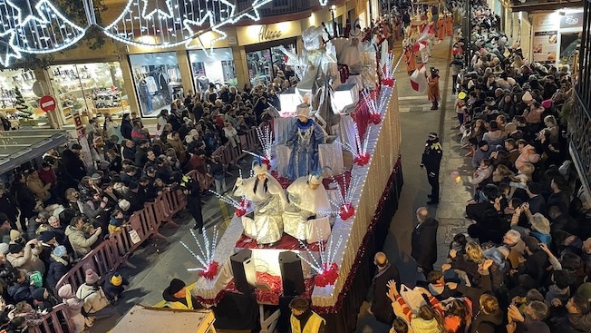 Les tres següents carrosses acompanyades dels respectius seguicis reials –els abanderats, l’obsequi de cada rei, els camarlencs i els patges- han estat les de Melcior, Gaspar i Baltasar. Tancant la Cavalcada de Reis hi havia la Colla de Diables, així com la Carrossa de les joguines i el carbó, els dos possibles obsequis que, segons la tradició, poden deixar ses majestats en funció de si aquell any els infants han fet o no bondat. Els infants, i els què ja no ho són d’edat però si de cor, ho sabran d’aquí a unes hores, el Dia de Reis.