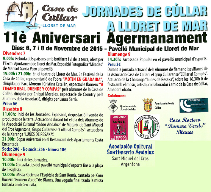 Aquest cap de setmana se celebren a Lloret les Jornades de la Casa de Cúllar, unes jornades d’intercanvi cultural, gastronòmic i lúdic, on no hi ha un moment de descans. Les activitats comencen el divendres 6 de novembre amb l’anomenat “Viernes Cultural”.